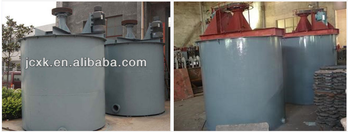 搅拌桶是由电动机三角带传动代动叶轮旋转,将药物和矿浆充分混合均匀,增加药剂作用反应时间强化药物反应质量的必要设备,本机适用于选矿业,也可用作各种化工业的槽糕搅拌。